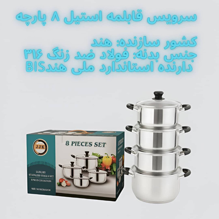قابلمه استیل 8 پارچه ضد زنگ دارای استاندارد ملی هند