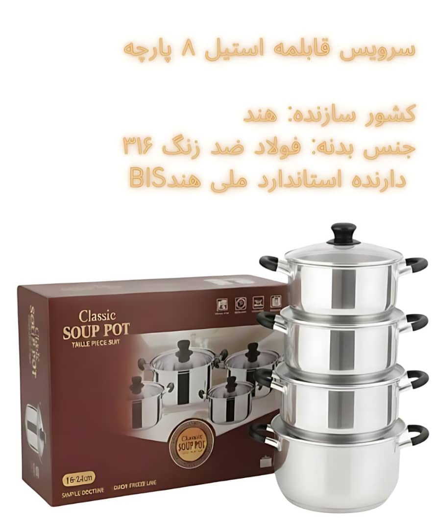 قابلمه استیل 8 پارچه ضد زنگ دارای استاندارد ملی هند درجه یک