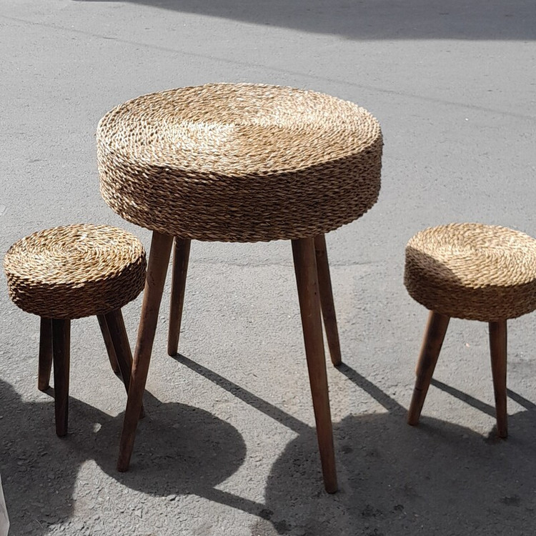 میز و صندلی پاف مدل حصیر باف کنفی چهار نفره پاف 4 نفره 🛑 ارسال محصول به صورت پس کرایه به شهرستان با باربری و در تهران با اسنپ بار انجام میشود