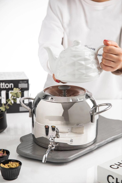 کتری قوری فلورنس طرح سنگ ضمانت دار شرکتی طلایی و نقره ای استیل